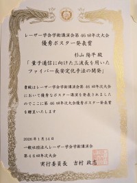 光学結晶を用いて白色レーザー光を発生させ、その発生原理を光の精密計測の手法を用いて解明することに成功しました。またこの白色レーザー光を用いて、レーザー振動数の精密計測を実証しました。今回の研究は、非線形光学の基礎的な研究及び長さなどの精密計測産業界への貢献も期待されます。![]() |